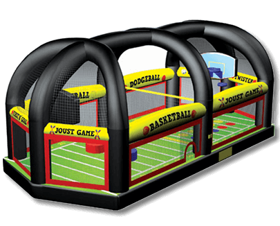 All in 1 Sports Arena™ inflatable will satisfy any sports fan with eight different game choices! Enjoy traditional team sports such as basketball, football, soccer, as well as classics such as dodgeball, first n' goal, and volleyball. For added adventure, game has set-ups for joust, and twister and mesh sides allow for easy viewing of the playing field. Great fun for any sports fan with this all in one arena.