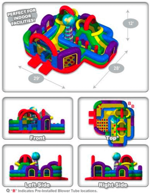 It's a Wacky World, especially in this fun-filled adventure! Run, climb, crawl, hopscotch, slide, jump, dodge, squeeze and twist yourself wacky. Wacky World incorporates both a hopscotch and twister style surface for kids to play. Excitement abounds!